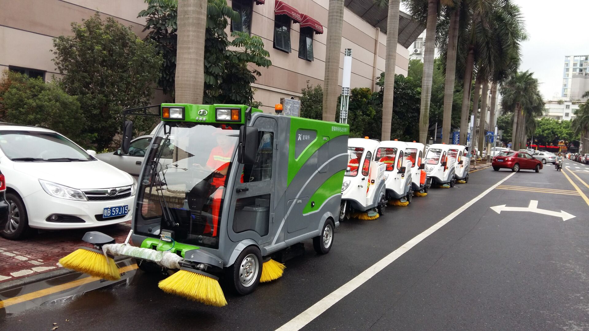 愛瑞特及龍華辦事處工作人員接到通知后,準備了一場特別的歡迎儀式。到達調研現(xiàn)場,迎面看到的是“愛瑞特儀仗隊”整齊劃一地停在馬路邊,等待領導的視察檢閱,成為觀湖街道上一道特別的風景線。龍華新區(qū)辦事處工作人員向相關領導系統(tǒng)詳細地匯報了環(huán)衛(wèi)項目的進展和后續(xù)規(guī)劃,并讓環(huán)衛(wèi)工作人員現(xiàn)場演示清掃過程。