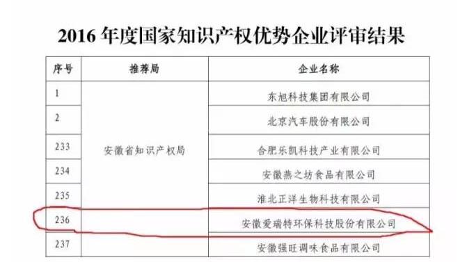關于2016年度國家知識產權示范企業(yè)和國家知識產權優(yōu)勢企業(yè)評審和復核結果公示的通知